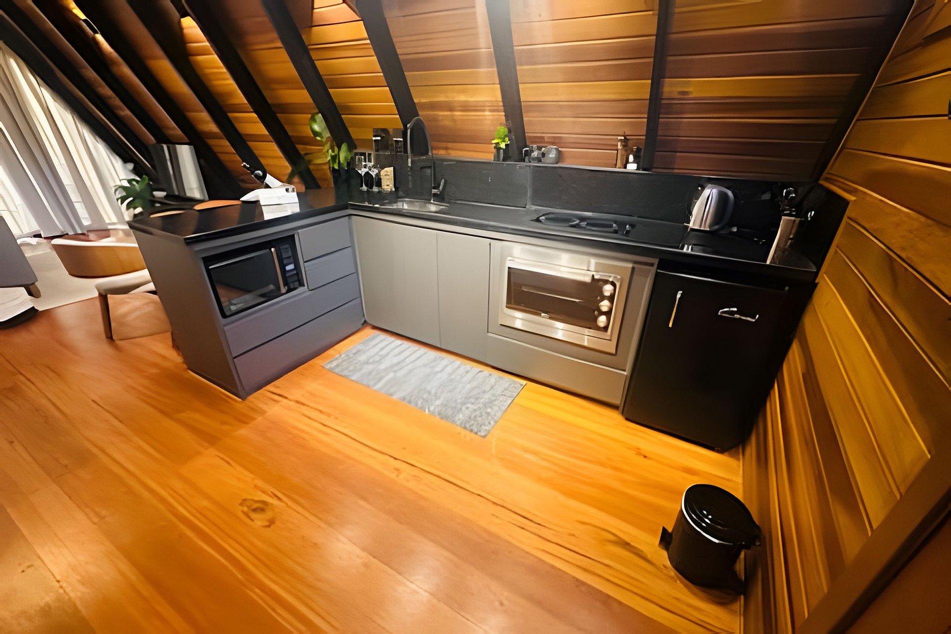 Cabana São Roque Black A Cabana fica localizada a apenas cinco minutos da estrada do vinho e a apenas poucos metros da Vinícula Goes (uma das mais conhecidas na região), próxima a diversos restaurantes renomados e vinículas com experiencias únicas. Nosso espaço conta com um terreno de cerca de 1000m2, são duas Cabanas disponíveis para locação, cada Cabana é inteiramente reservada para cada hóspede. A Cabana Black possui cerca de 80m2 e conta com um quarto (Mezanino, acesso por escadas), com Cama Queen, Cozinha Completa (Forno, Microondas, Cooktop de duas bocas, Pia e Frigobar), além de uma Banheira de imersão incrível , sala completa com TV, mesa de jantar e wifi de alta velocidade, ar condicionado quente e frio na sala e no quarto.